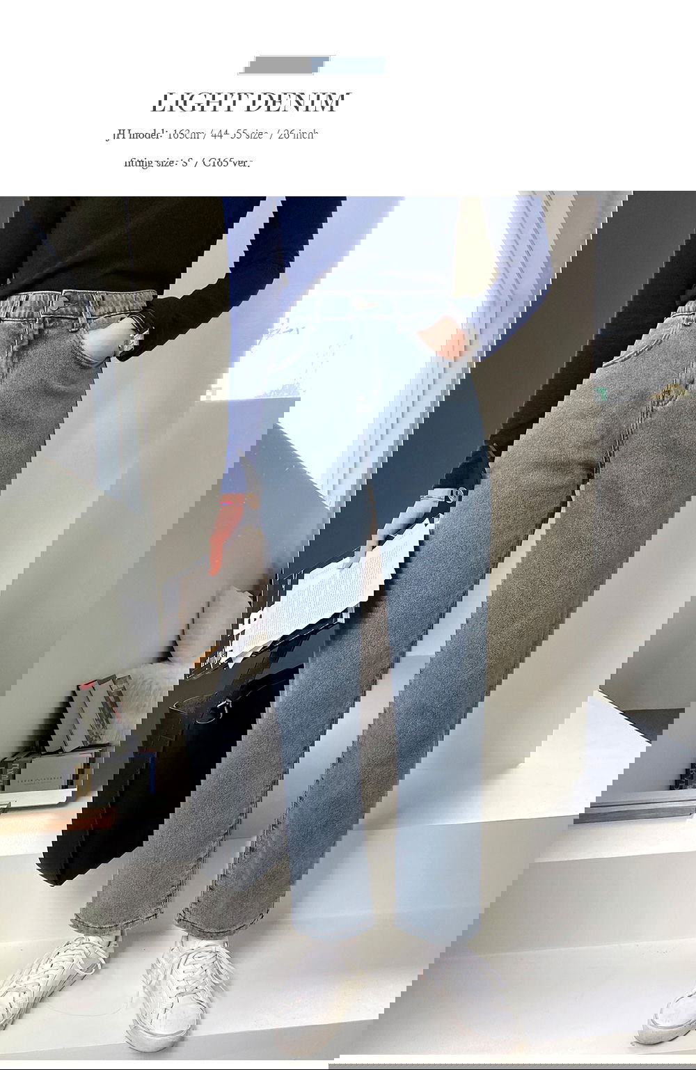 彈性氨綸材料舒適貼合 合身拉鏈筆型牛仔長褲 半寬鬆版型設計,纖細地覆蓋修飾腿部線條