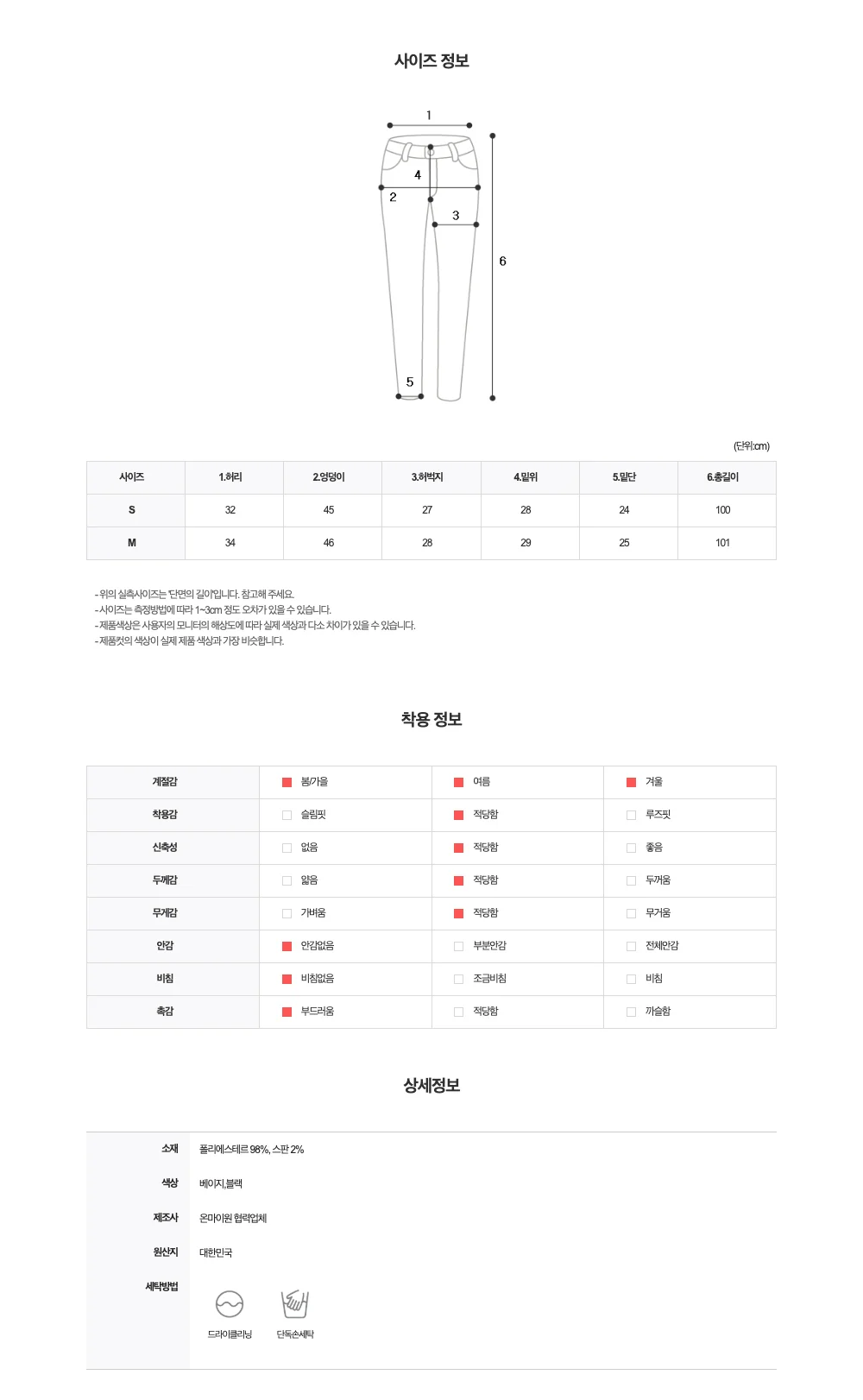 | 尺寸 | 腰 | 臀圍 | 前檔長 | 大腿寬 | 褲管寬 | 全長 |