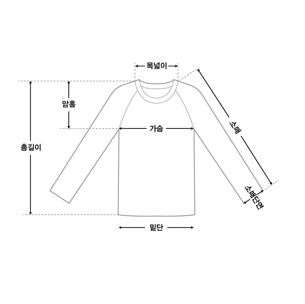 | 尺寸 | 胸部 | 腋下袖寬 | 袖長 | 手腕袖寬 | 全長 |