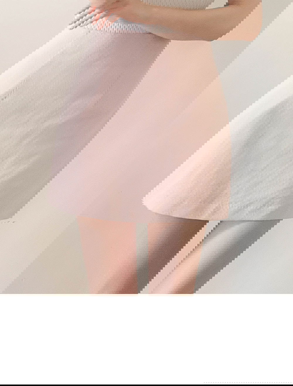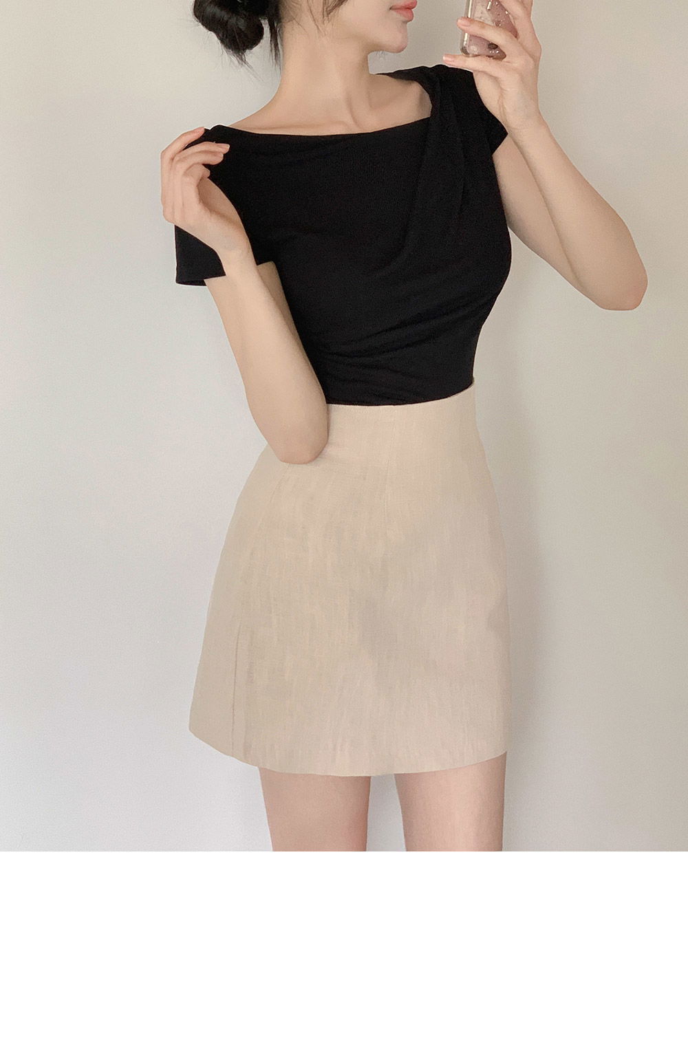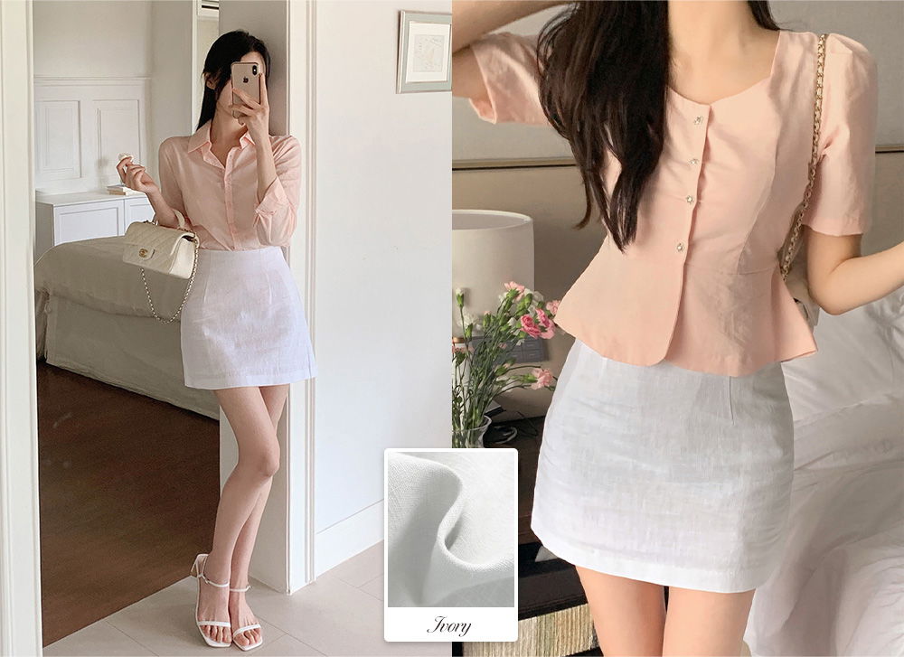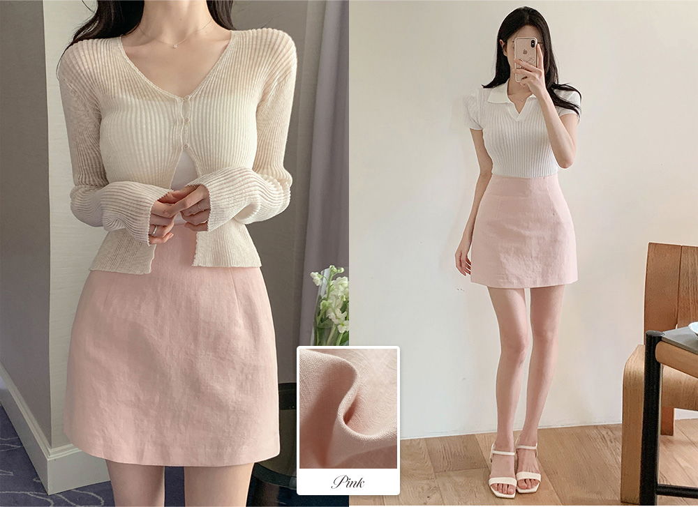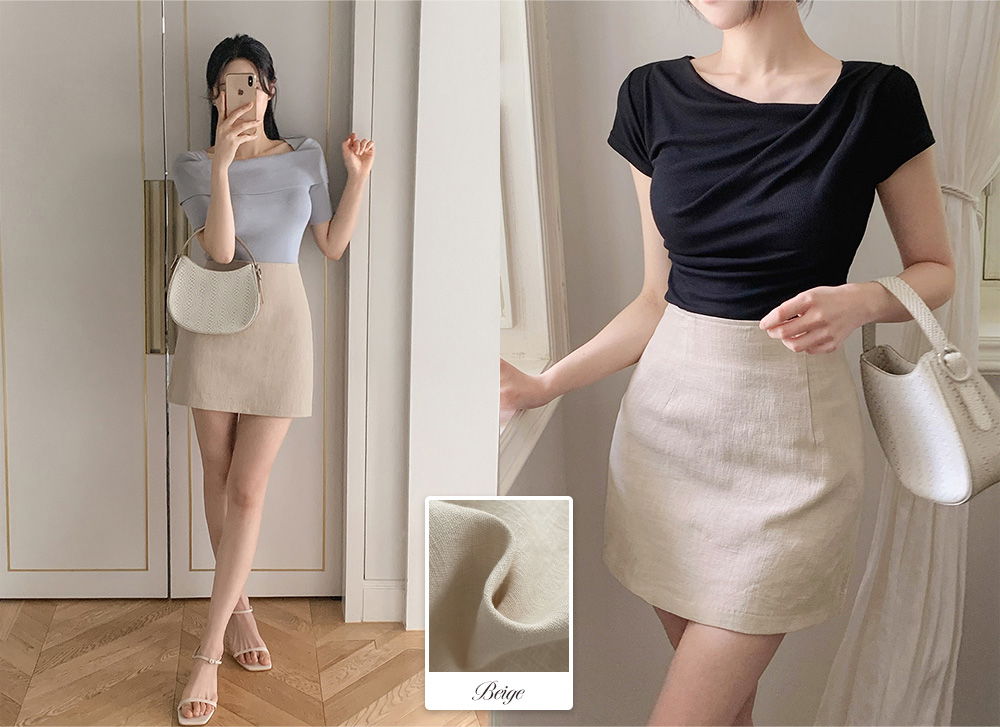 精製款素面亞麻迷你裙