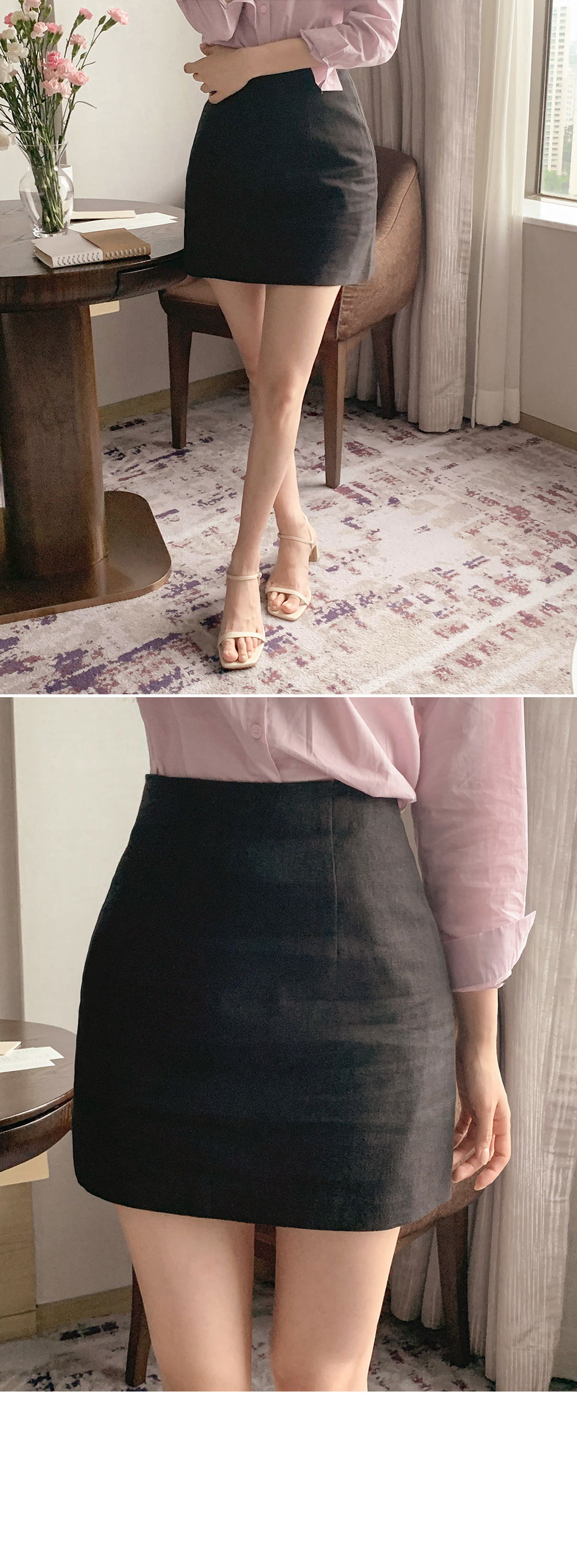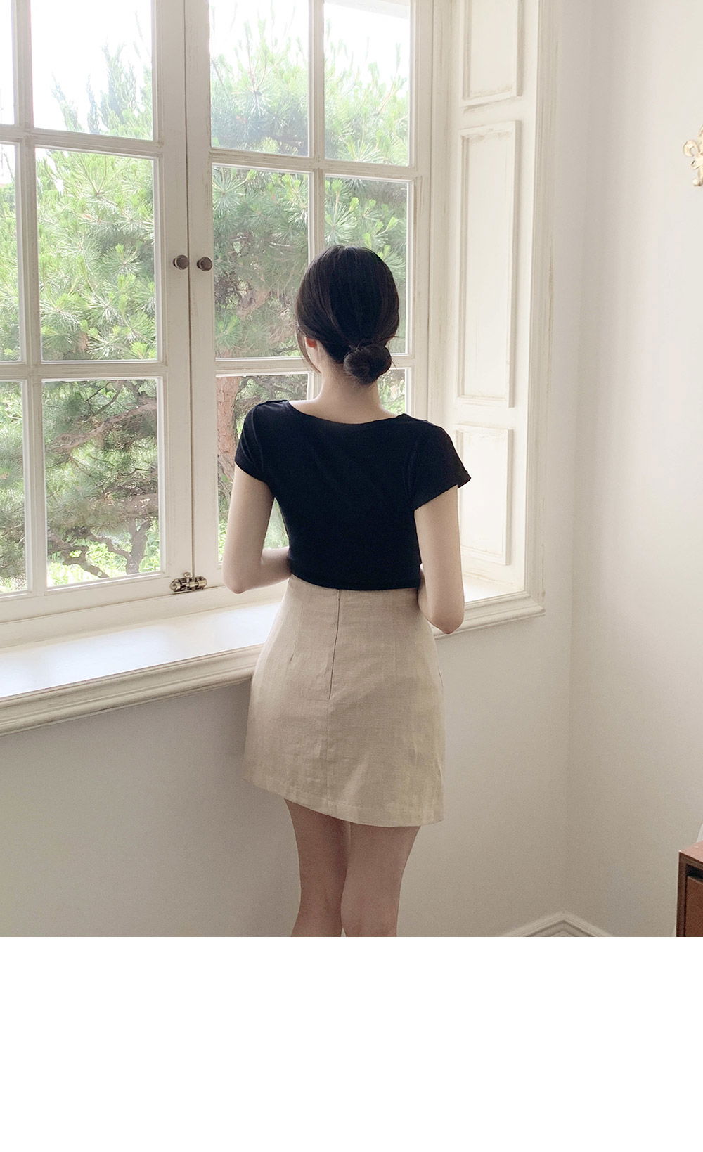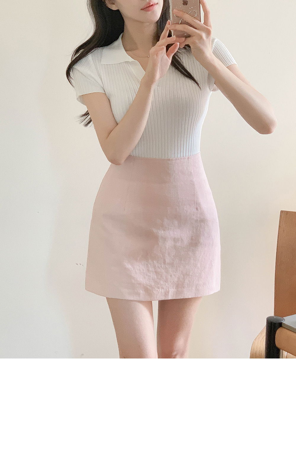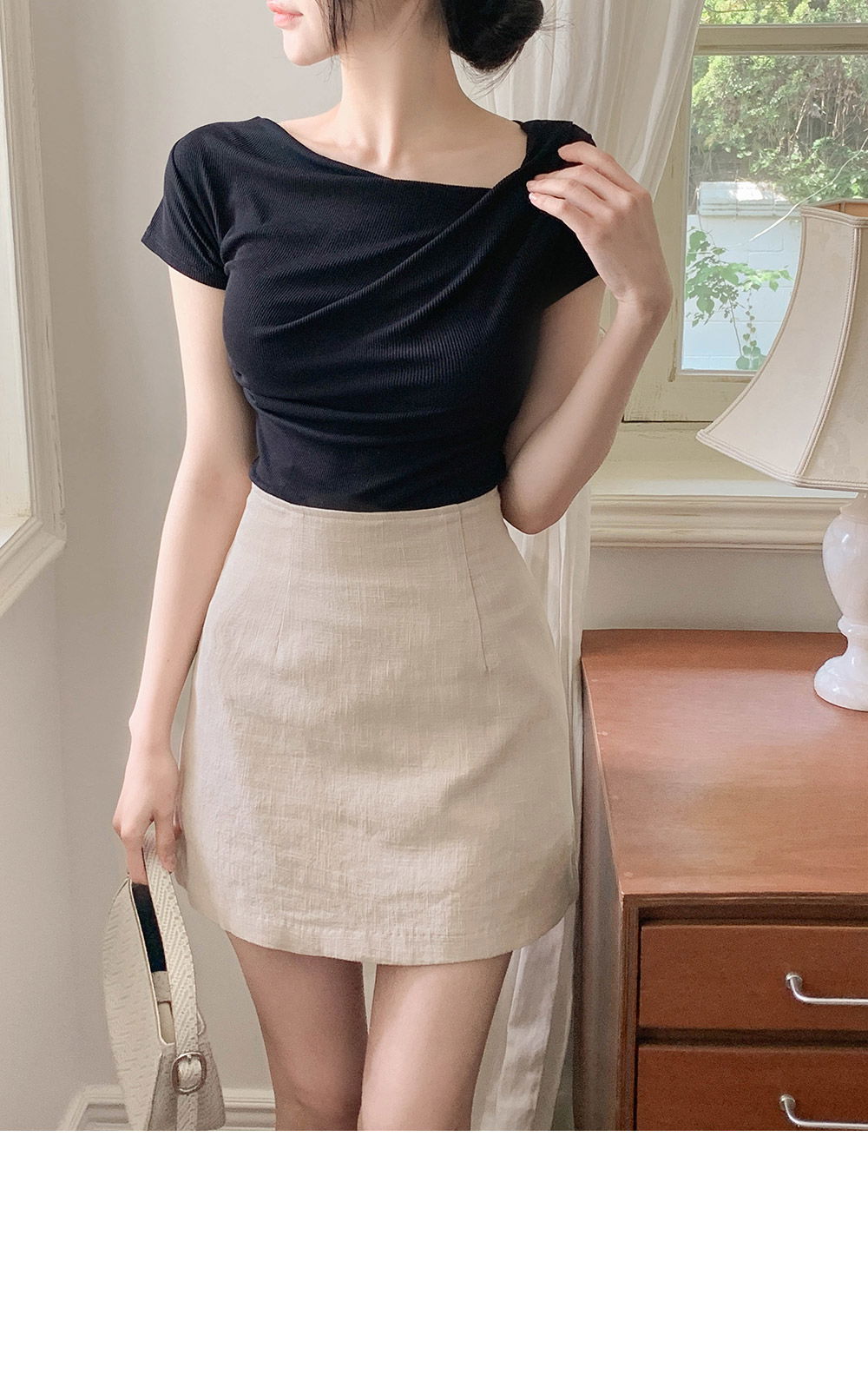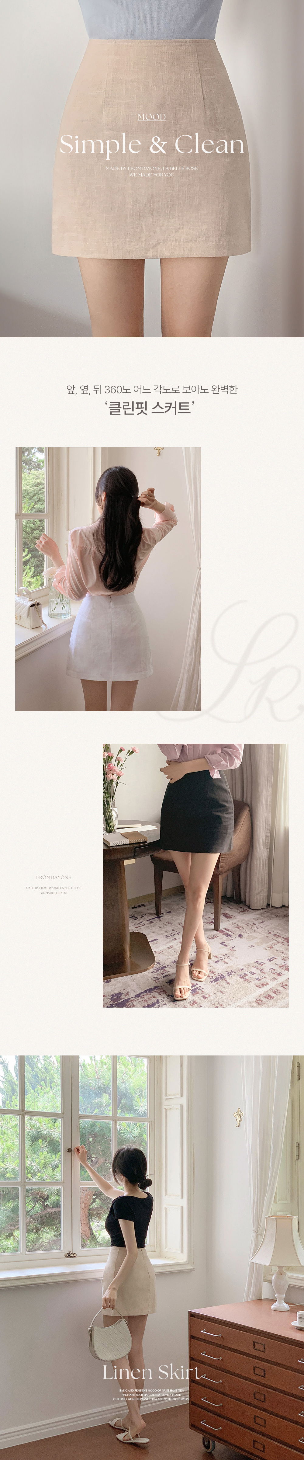 精製款素面亞麻迷你裙
