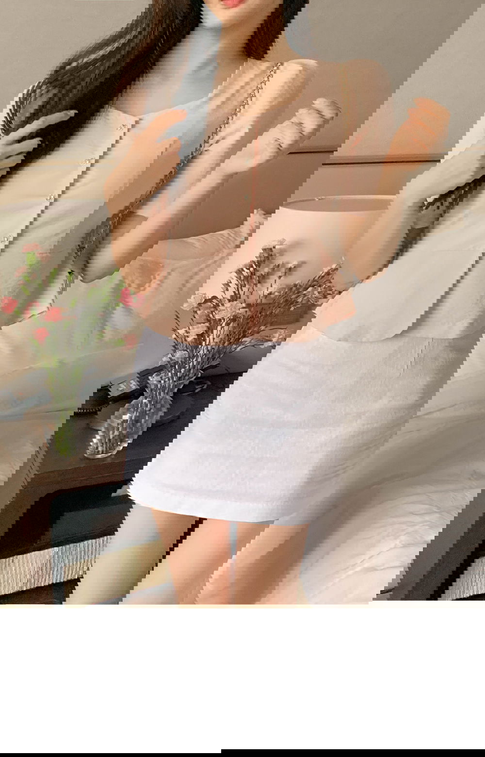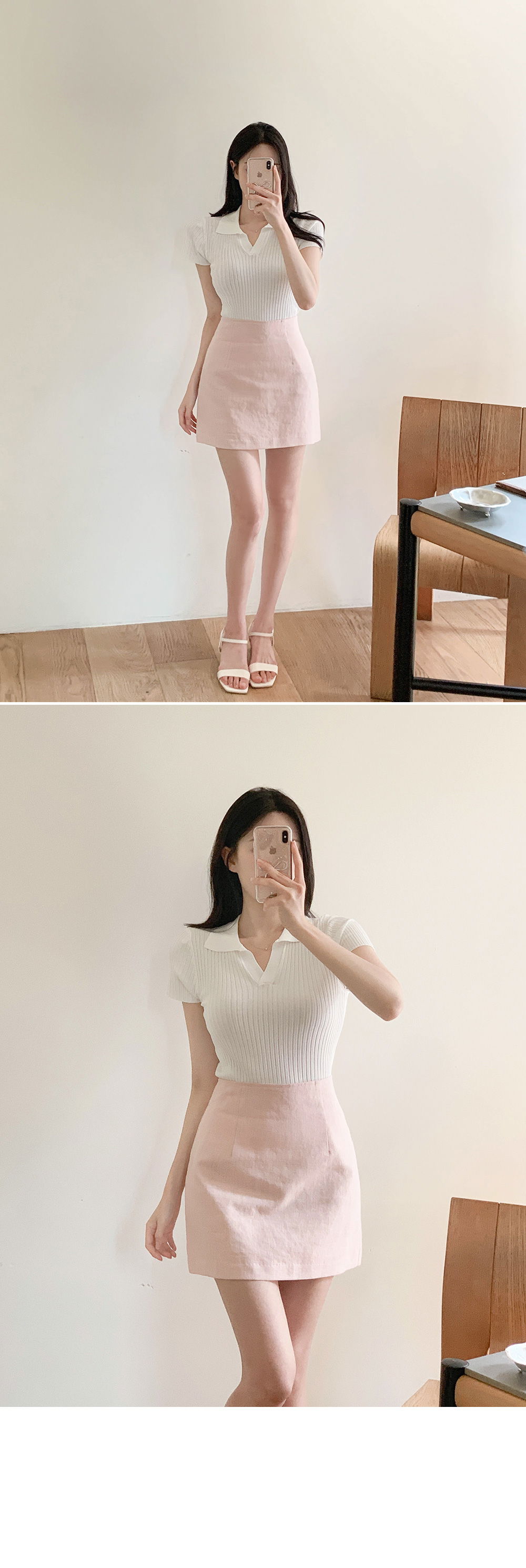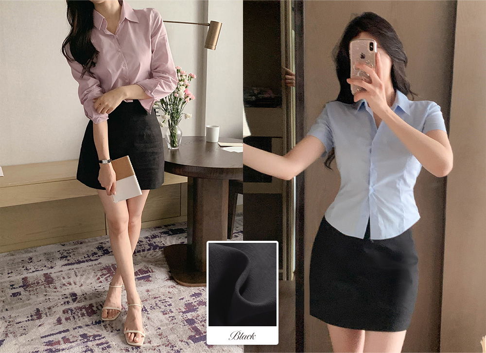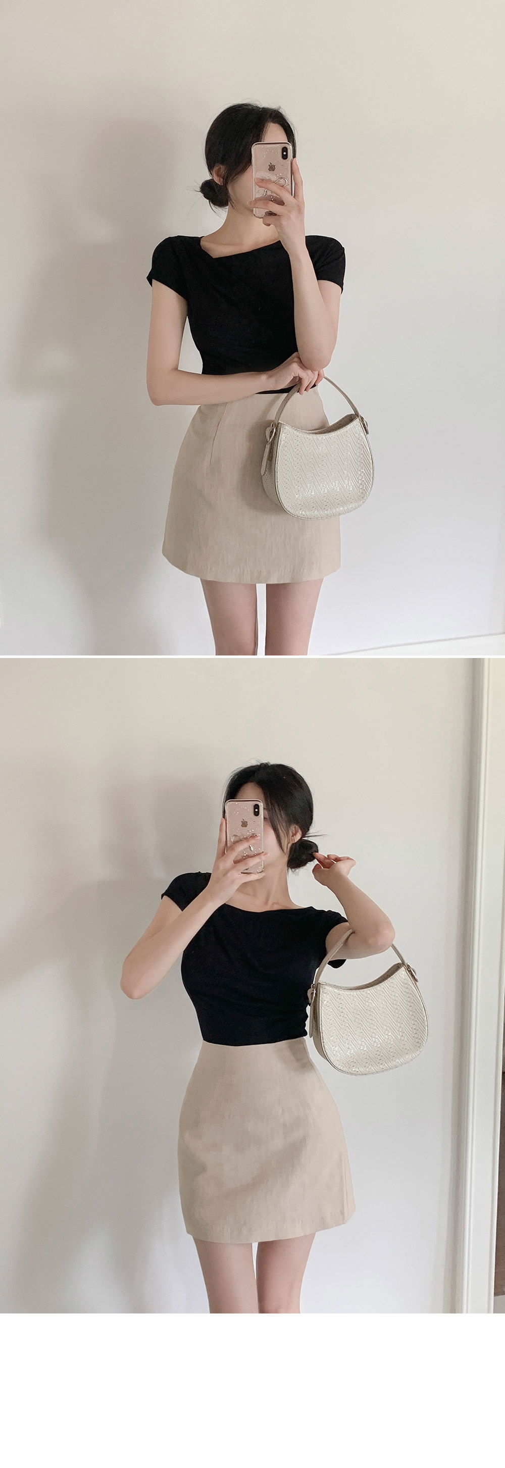 精製款素面亞麻迷你裙