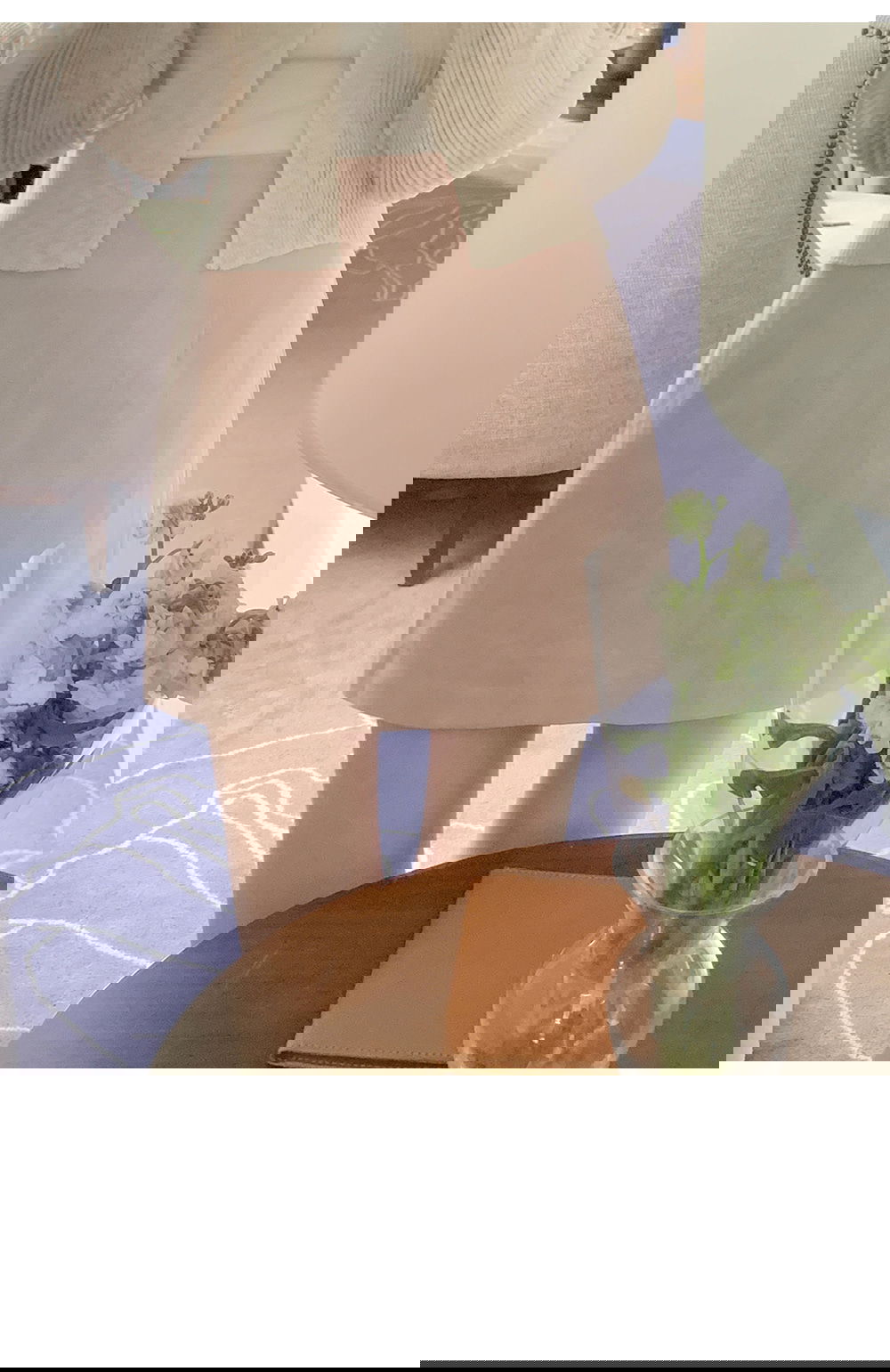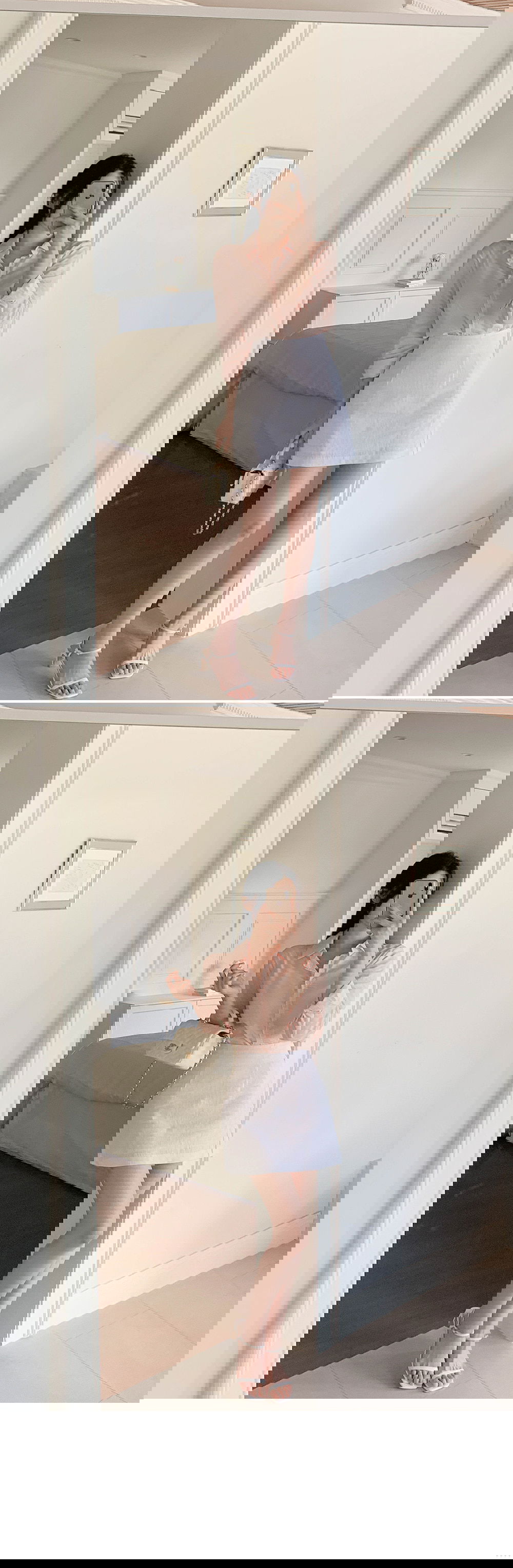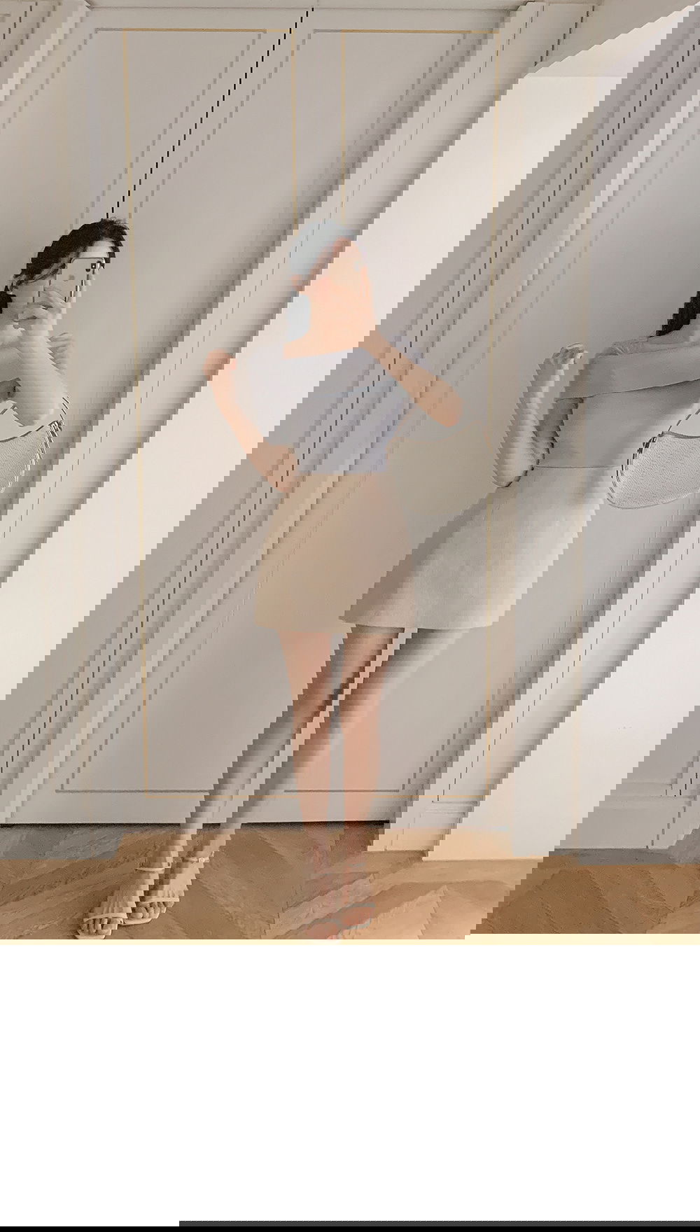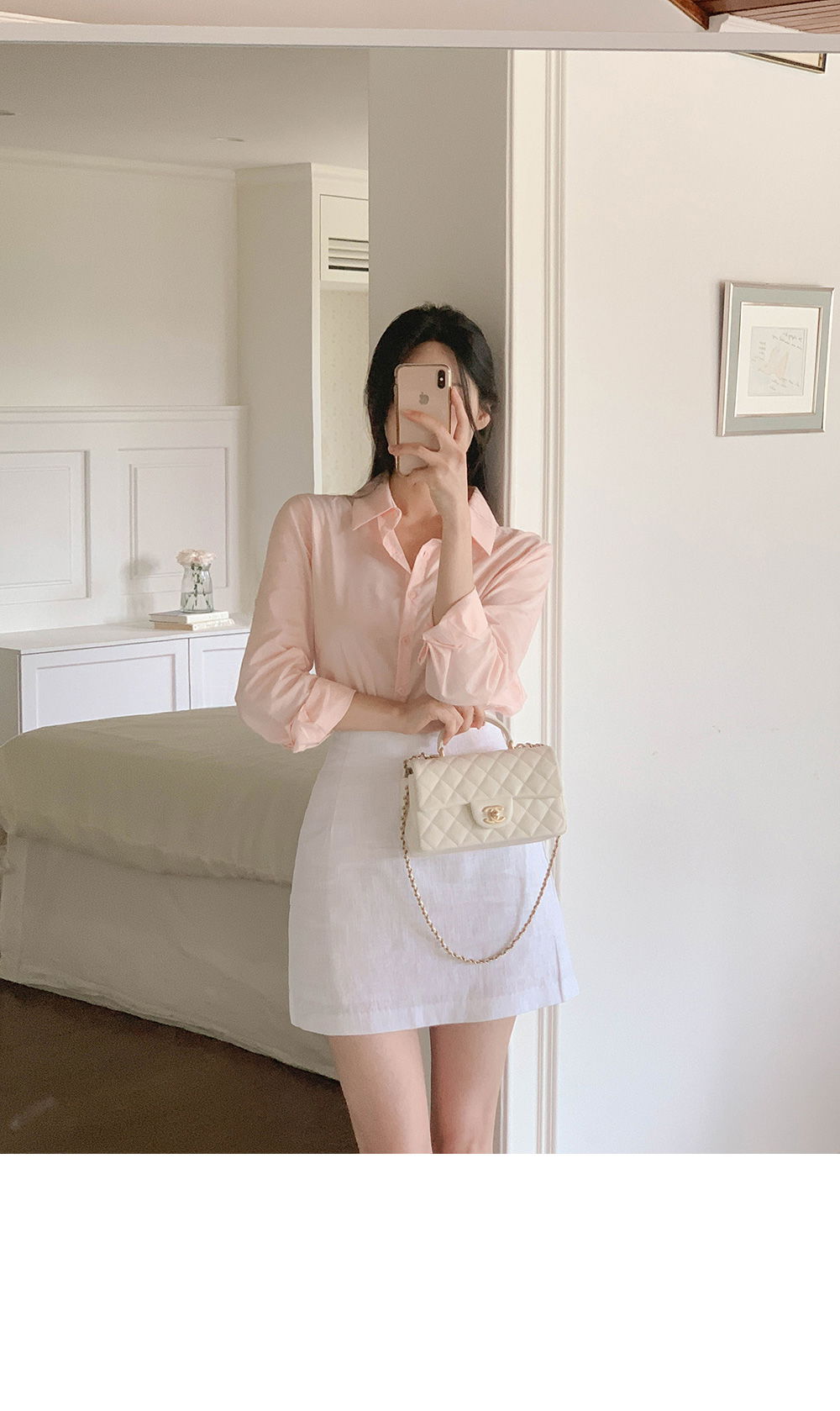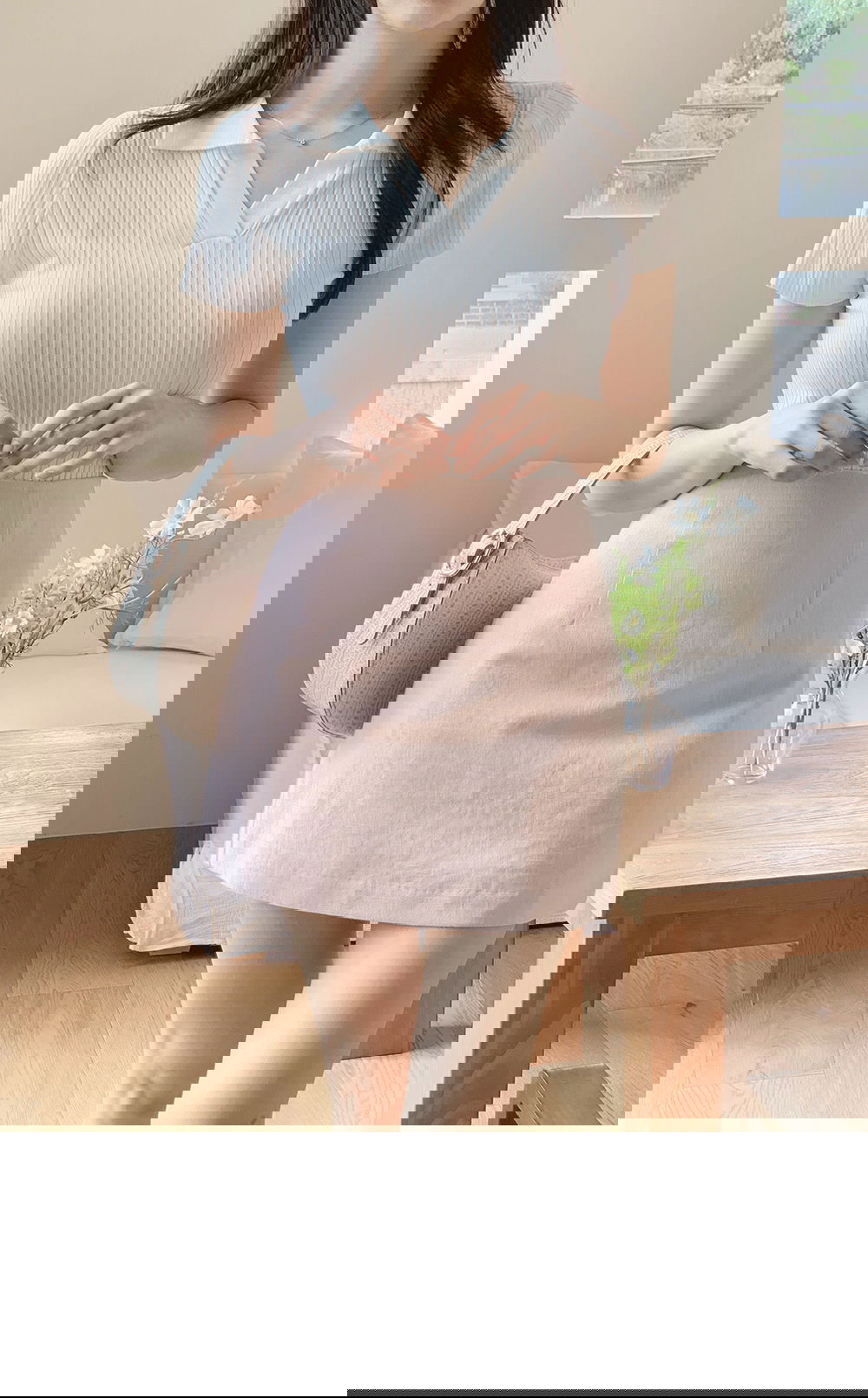 精製款素面亞麻迷你裙