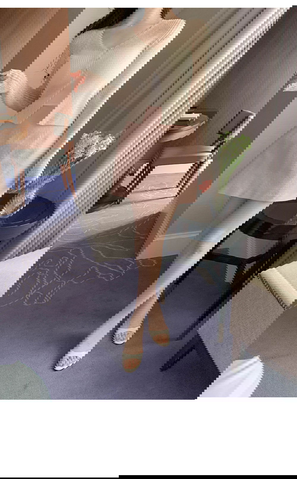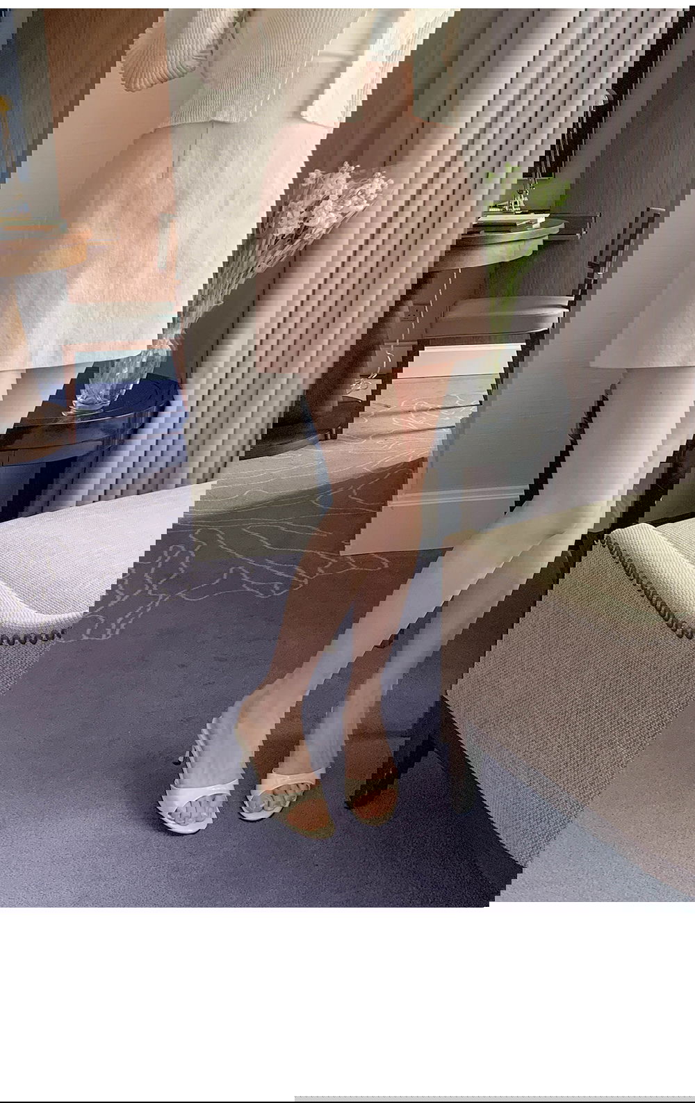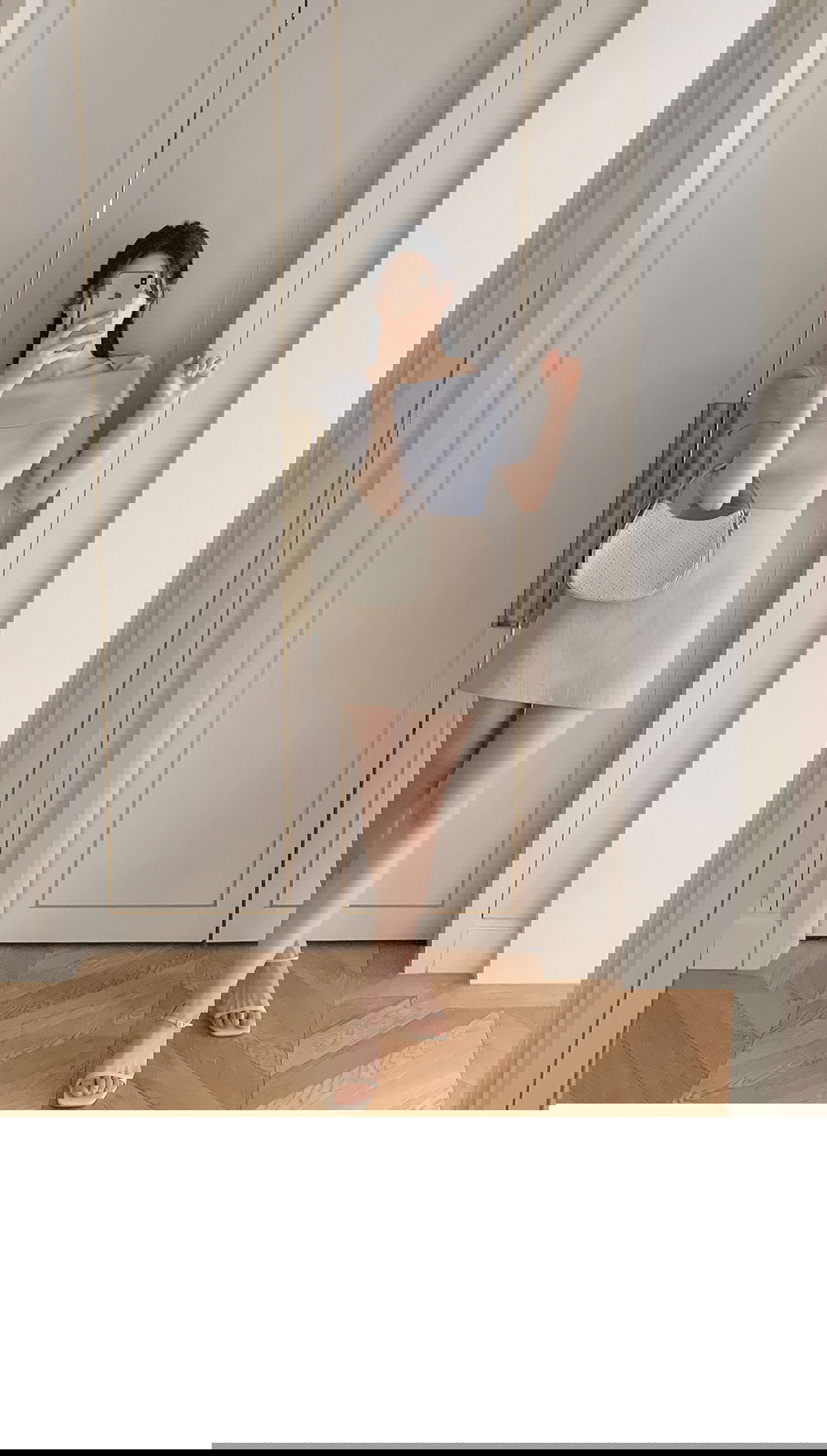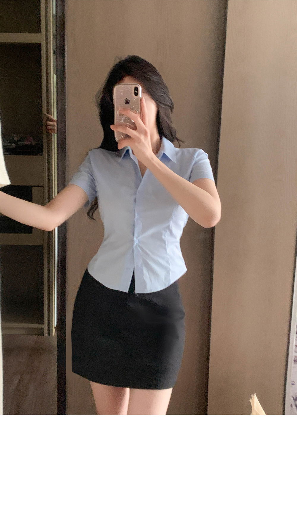 精製款素面亞麻迷你裙